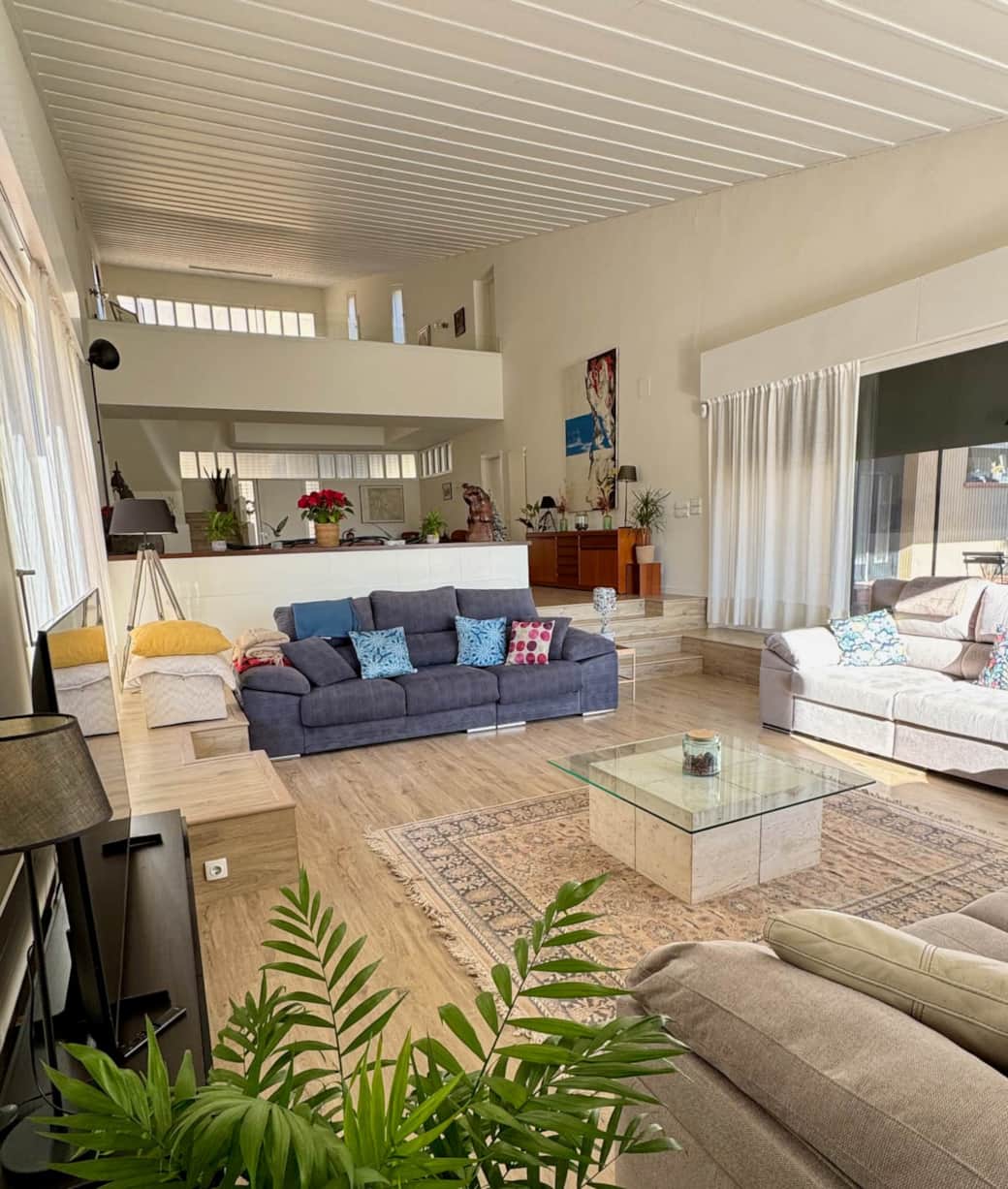 Cocina totalmente equipada, gran salón en dos niveles y sala de juegos.